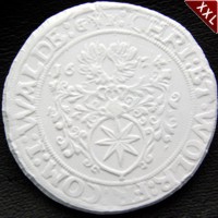 Randschrift: 4 teilen die Worte WALDECKISCHER KRONTHALER F. SILB.