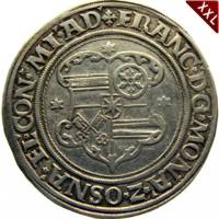 Rv: Ums.: +FRANC *' D *' G *' MONA *' Z * OSNA *' EL *' CON *' MI *' AD ' Lilien als Teiler